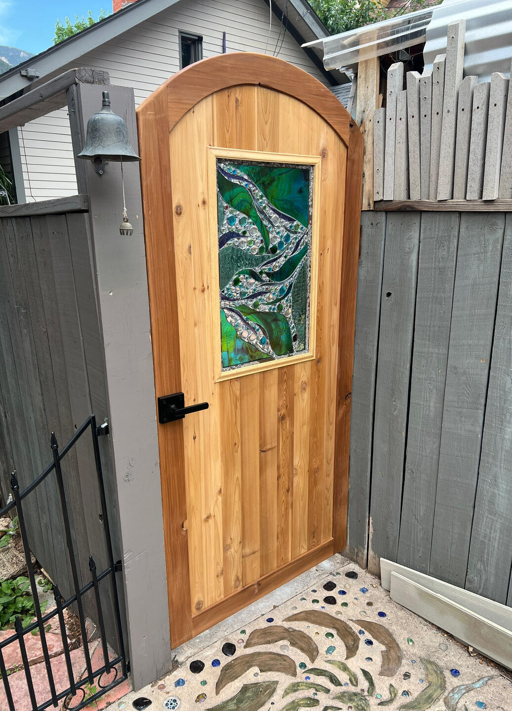 Cedar Exterior Gate w/ Stained Glass Panel